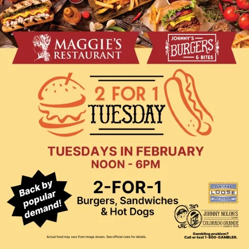 Enjoy 2-for-1 Burgers, Sandwiches and Hot Dogs at Maggie’s Restaurant and Johnny’s Burgers