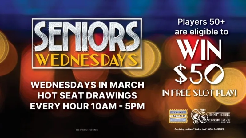 Seniors Wednesdays Wednesdays in March Hot Seat Drawings Every Hour 10am – 5pm Players 50+ are eligible to win $50! + Add to Google Calendar + iCal / Outlook export 00 days 00 hours 00 minutes 00 seconds Date Mar 11 2026 Time 10:00 am - 5:00 pm Share this event